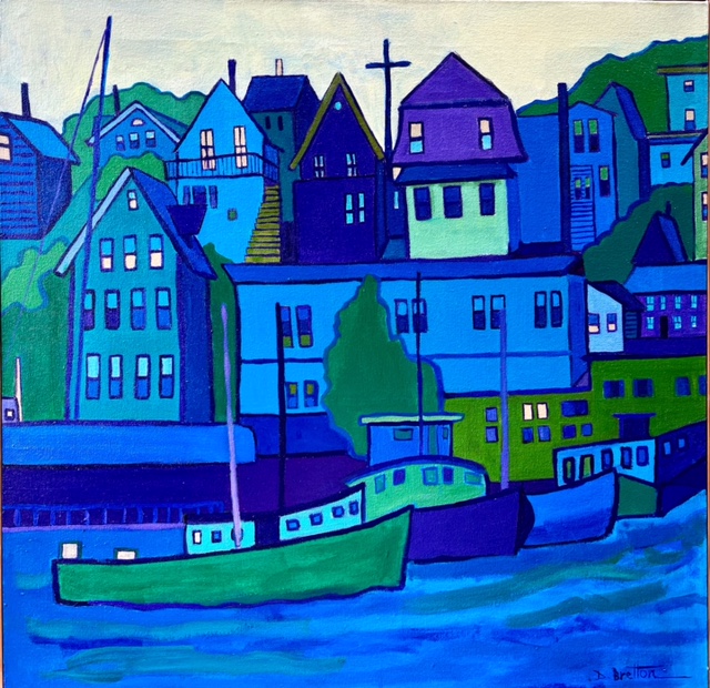I love playing within the same color realm. This scene is fabulous because it has it all: the boats, the harbor, the water and my beloved layers of houses. The houses all have such personalities too. Kind of like people.
