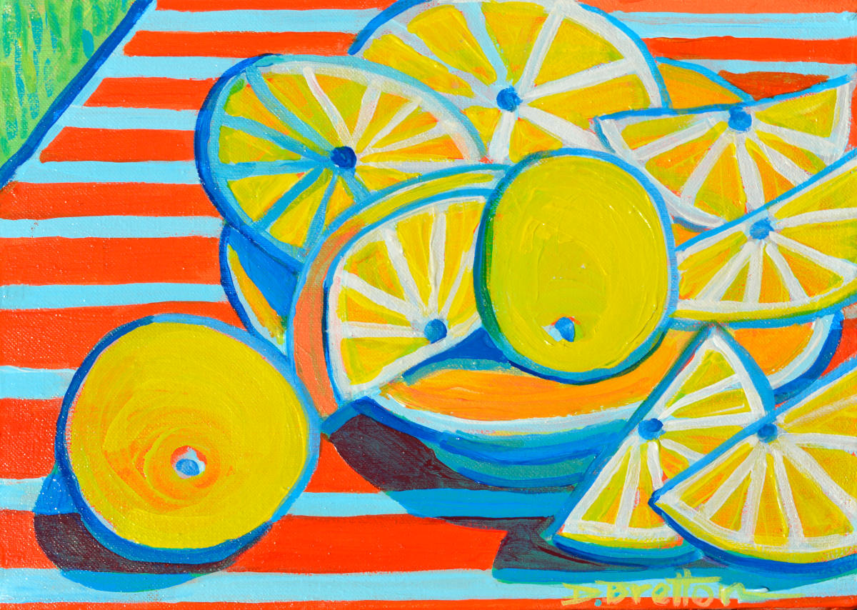 “Lemon Zest”, acrylics on canvas, 12″ x 9″ x 1″, Unframed, Original Painting (one of a kind)